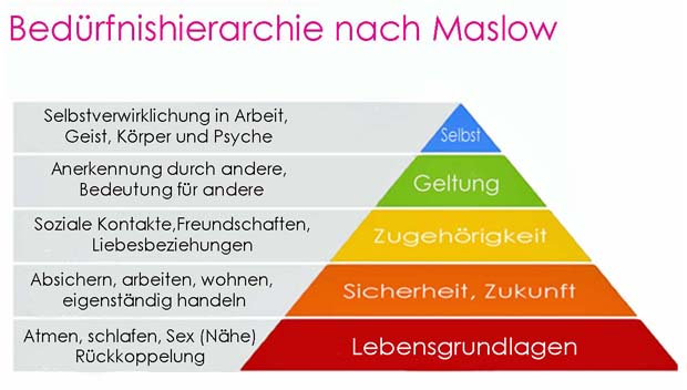 Maslow - Bedürfnisse in Stufen aufgeteilt